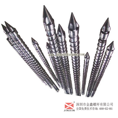 螺杆的设计有两种:螺杆和分胶一体式;螺杆和分胶头分开式。对产品的质量要求高和只打制单一塑(PVC)则使用连体式最合适,反之则可选用分体式,但需注意,螺杆和分胶头分开易造成积料。